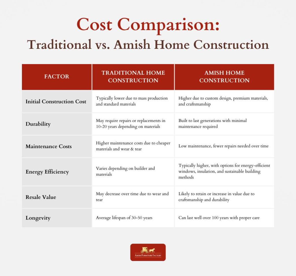 When it comes to cost, Amish-built homes typically come with a higher upfront price tag. This is because the builders take more time and care with the construction, using superior materials and craftsmanship. Think of it like buying a custom-made piece of furniture—it costs more, but it lasts longer and is unique. While the initial cost may be higher, the long-term benefits are worth it. Amish homes require less maintenance, last longer, and are often more energy-efficient, which can save you money on heating and cooling bills. So, while the investment may seem steep at first, the long-term savings on repairs and energy costs make it a financially smart choice.