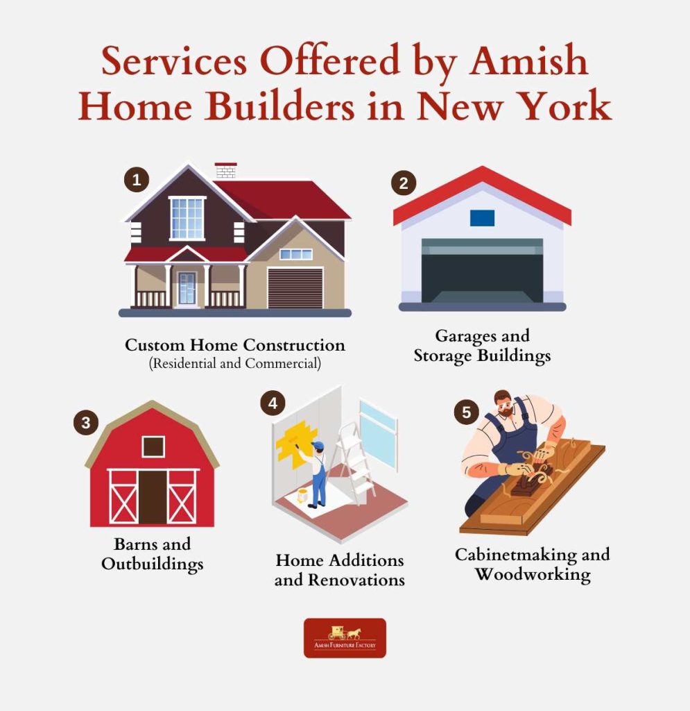 - Amish home builders in New York offer durable, high-quality homes with traditional craftsmanship.