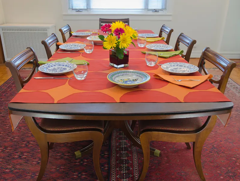 Padded table covers with moisture and heat-resistant features are available online or at home furniture stores. These are similar to ironing board pads but aesthetically better. Compared to non-padded ones, padded covers provide extra protection for accidental spills and heat while eating.