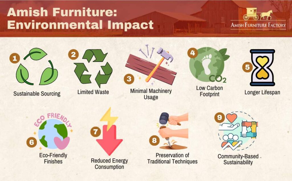 Reduce your carbon footprint by choosing Amish furniture, as their handcrafted pieces are made from sustainably harvested wood and do not contribute to deforestation.