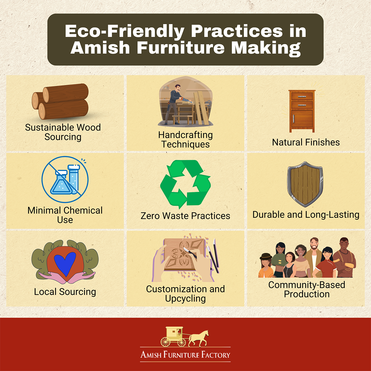 Amish furniture promotes sustainability by utilizing locally sourced wood and employing eco-friendly practices.