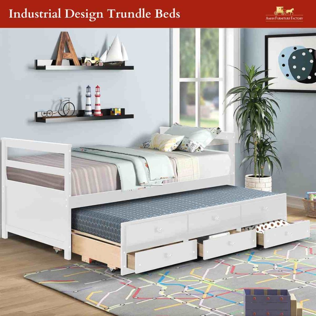 Industrial trundle beds combine wood with metal accents for a bold, modern look. These designs often feature exposed hardware, dark finishes, and sturdy frames, giving them a rugged yet stylish edge. They’re ideal for loft apartments or urban-style homes that incorporate industrial elements like concrete walls or metal fixtures.