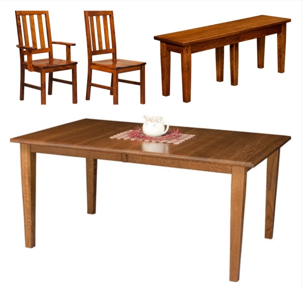 It is with pleasure that I share my experience with ordering a dining set from the Amish Furniture Factory. Our Denver-style table, amish made dining chairs, and bench are beautiful and perfect for our kitchen! We are impressed by the quality of the craftsmanship and the simple elegance of the pieces.