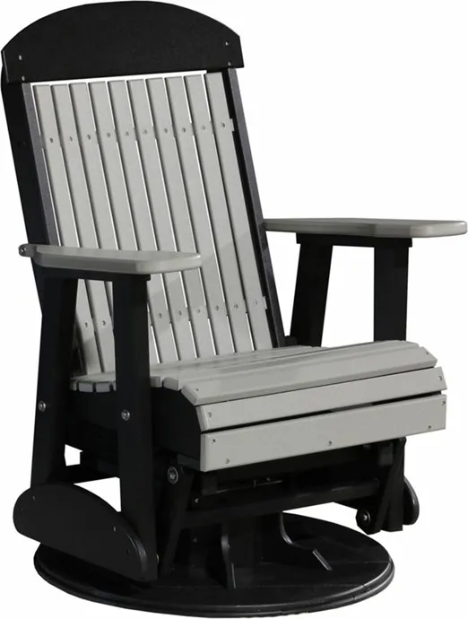 Outdoor relaxation is more than a dream with this swivel glider. The glider uses attractive vertical slats and a chair top so you can relax your whole back. The easy care poly vinyl is relaxing even after you get up.