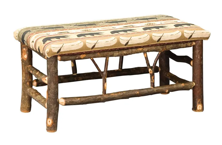 Twigs are the pride and joy of this hickory bench with a soft upholstered seat.