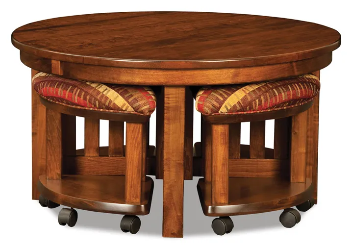 For those rooms that are perfect for hosting guests but just slightly small, this versatile 5 piece table set is ideal. The set has five benches that are comfy and on wheels for easy moving. The benches tuck perfectly underneath the round dining table to minimize storage space. The cushions on each bench adds comfort and lift to reveal additional storage.
