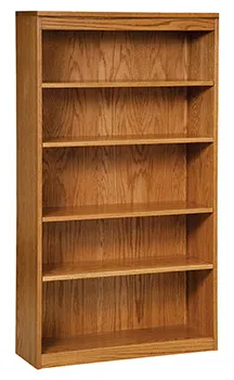 Read more below to order this piece for Quick Ship.For a large bookcase that won’t break the bank, the economy bookcase is perfect. Constructed out of solid wood, the five shelves won’t warp, bend or break from your personal library. Don’t forget to ask the Amish Furniture Factory if you can stain the bookcase to match your home décor. There are also 48” and 72” versions of this bookcase.