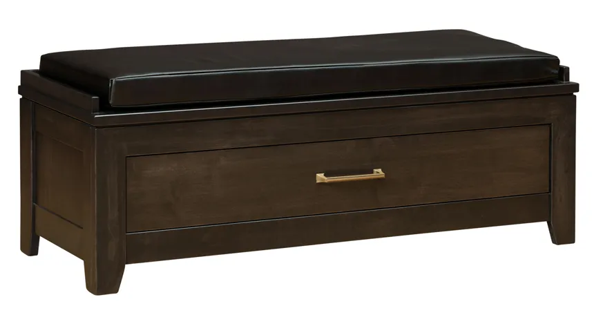 Our Amish wood bench is pictured in brown maple with Dark Knight stain and optional 55347-GB hardware.
