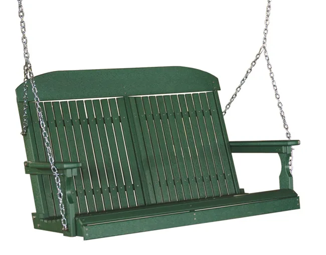 This poly porch swing's straight lines and high back add sophistication compared to other poly vinyl swings, but it is just as easy to care for.