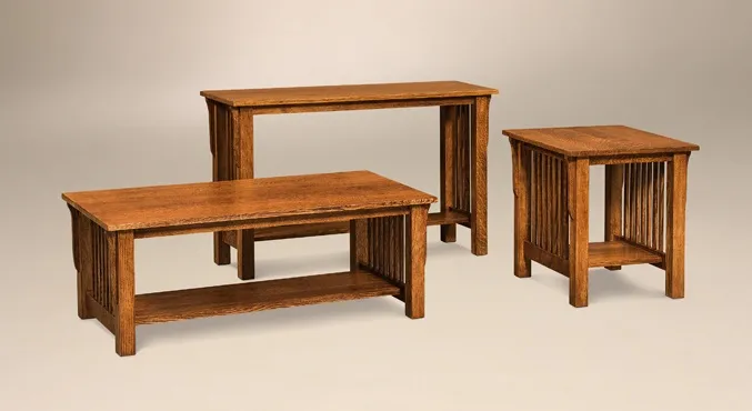 These elegant tables are all about the slats. The convenient bottom shelf lends to the sturdiness of this table, while hardwood mortise and tenon joints give meaning to every detail.