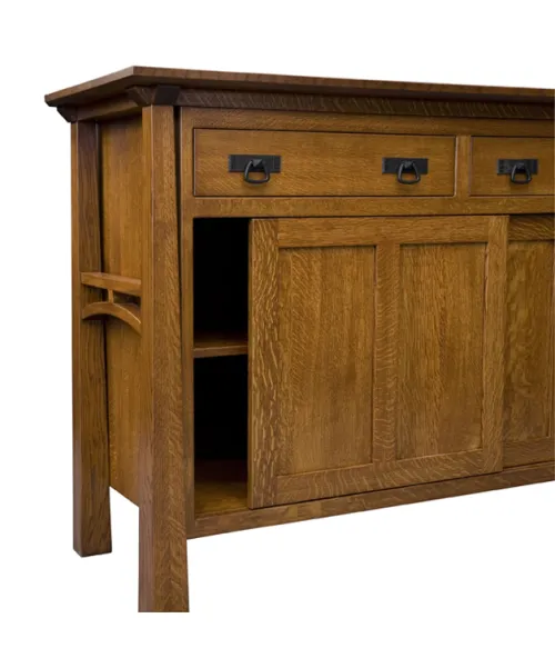 The Artesa Sideboard complements the Hutch with beautiful crown accents and pieced side design. Bottom sliding doors are a unique feature that creates convenience as well as a simply modern feel.