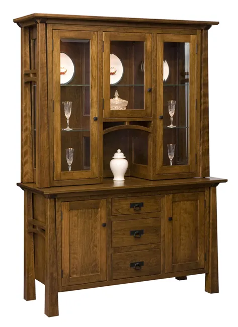 Incredibly detailed with beautiful crown accents and pieced side design, the Artesa hutch creates a modern feel. The open/closed top features the same accent design as the top and bottom side panels.