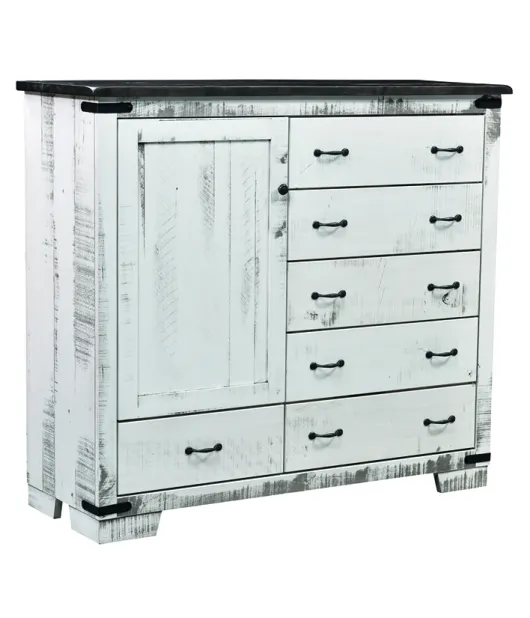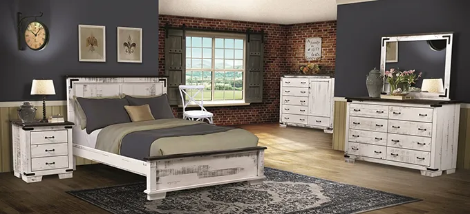 Pictured in rustic brown maple with painted White with Antique Gray Glaze finish.