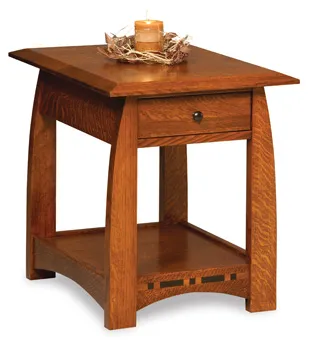 The Boulder Creek End Table features a gorgeous ebony inlay and exquisite contemporary design that showcases graceful curves and smooth lines. This style has a timeless quality that will ensure it will stay stylish into the decades it will last. It's hand crafted from the highest quality hardwoods available in the North.