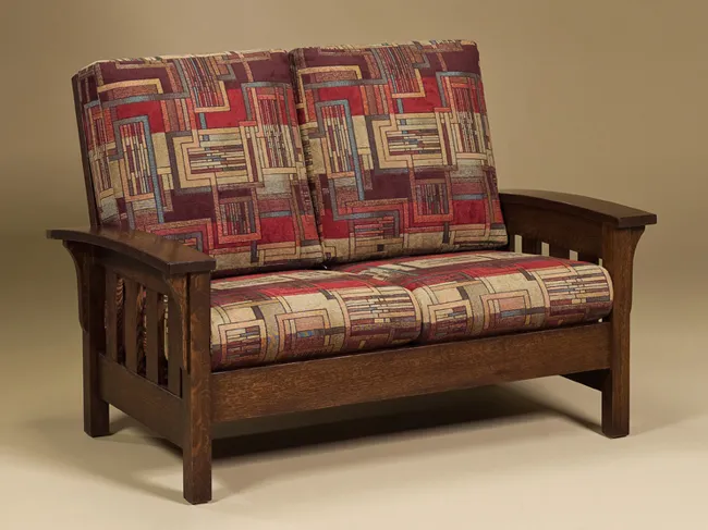 Share the comfort of this loveseat with someone special. The comfortable bow arms top stylish slats on a durable wood frame. Here is an heirloom piece that you can share with your loved ones now and in the future.