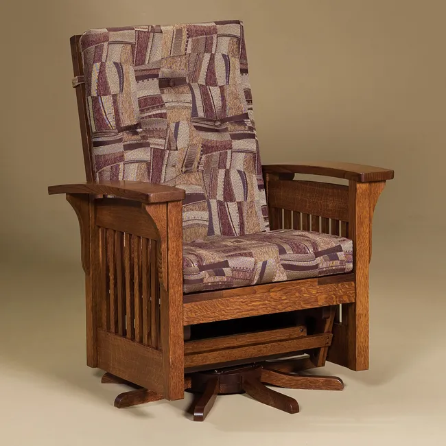 The Panel Glider Swivel is also available with side panels rather than slats. Contact us if you would like to provide your own upholstery material. Frames feature mortise and tenon construction for long lasting durability. Add the Slat Ottoman to your glider for additional style and comfort.