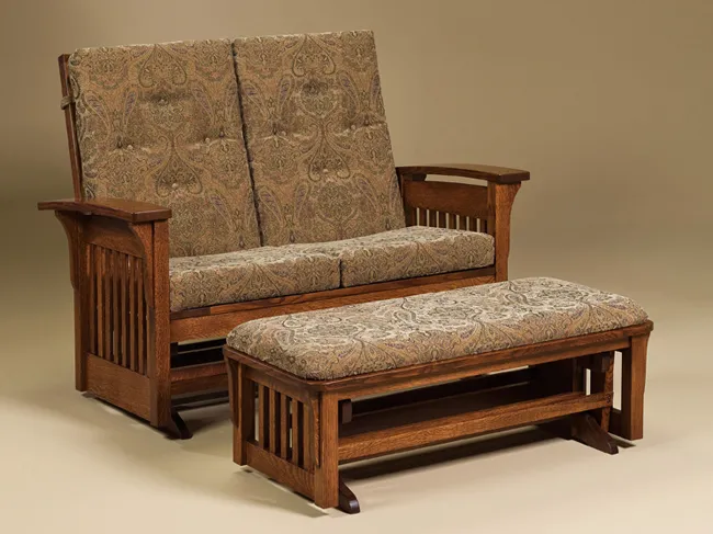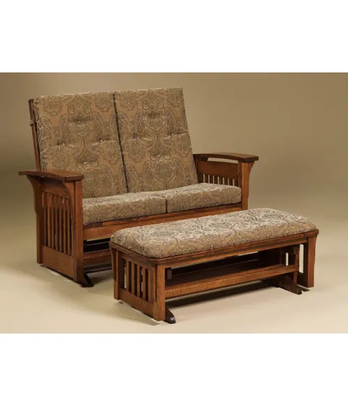 Crafted with meticulous attention, this piece features traditional mortise and tenon joinery, known for its strength and longevity in fine woodworking. This careful construction ensures that the loveseat glider and ottoman will endure through years of use, maintaining its structural integrity and beauty.