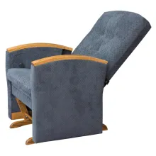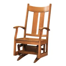The McCoy Swivel Glider has its wood back angled just right for the cushion. The arm rests are curve..