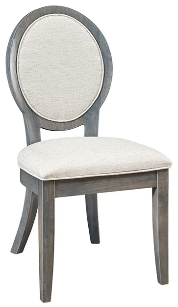 Pictured in brown maple with Grey Flannel stain and the chairs with C8-57 Coconut fabric onseat and back and R1-54 Desert fabric on backside.