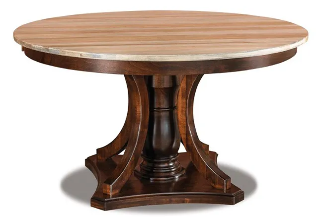 Pictured in brown maple with top in Belair stain and base in Rich Tobacco stain. If you would like your table to have a two tone finish, please call for the custom finish pricing.