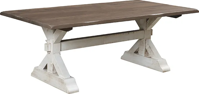 Pictured in brown maple with DC Driftwood top and base with Coastal White stain.