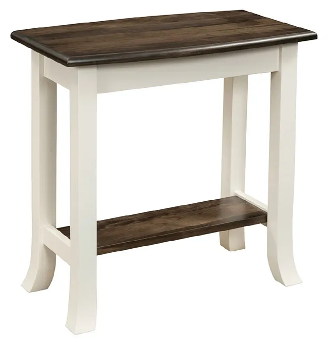 Pictured in brown maple with top and shelf in Shadow stain and base in OCS342 finish. Shown here with a custom two tone finish. Custom finishes need to be ordered by phone.