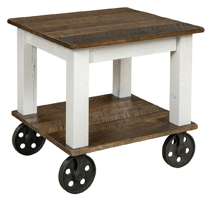 Pictured in reclaimed rough sawn with top in Natural stain with Black Glaze and base in White paint finish. Shown here with a custom two tone finish. Custom