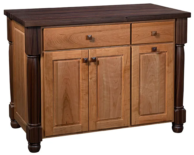 Pictured in walnut top and cherry and walnut base with Natural finish.