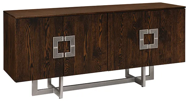 Pictured in oak with Old Museum stain and Performance Gold Metal base.
