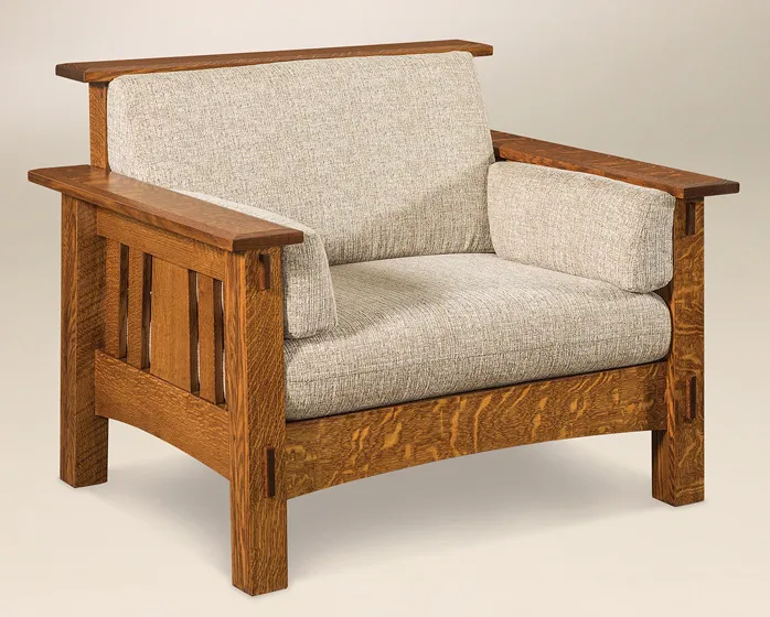 The McCoy Cushion Chair is one of the most fine and luxurious pieces in our line. An incredible amount of time is spent with working, shaping and building this piece from the highest quality hardwoods available in the country. It has a versatile style blending well in contemporary or traditional settings, depending on how you finish the wood and upholster the seats. If we don't have the upholstery you're looking for, we can install fabric from any fabric company.