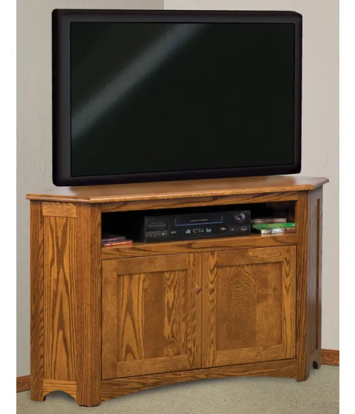 This Mission 48 & 56" Corner TV Stand features beautiful dental work around the top edges, arched trim around the legs, and simple, elegant square angles and edges that are characteristic of mission styling.