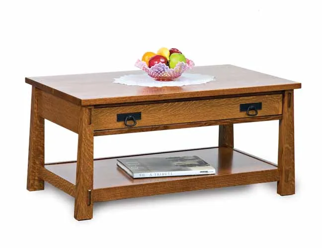 The Modesto Coffee Table is a great addition to any living room or waiting area. It's has ample surface space to toss your reading material, and a drawer for knick knacks. It's boldly styled tapered legs and both strength and grace. The Modesto style look phenomenal when mixed with other Traditional & Casual Furniture styles such as Shaker and Mission. This table can be ordered in five different wood types and dozens of stain combinations to get the look you want.