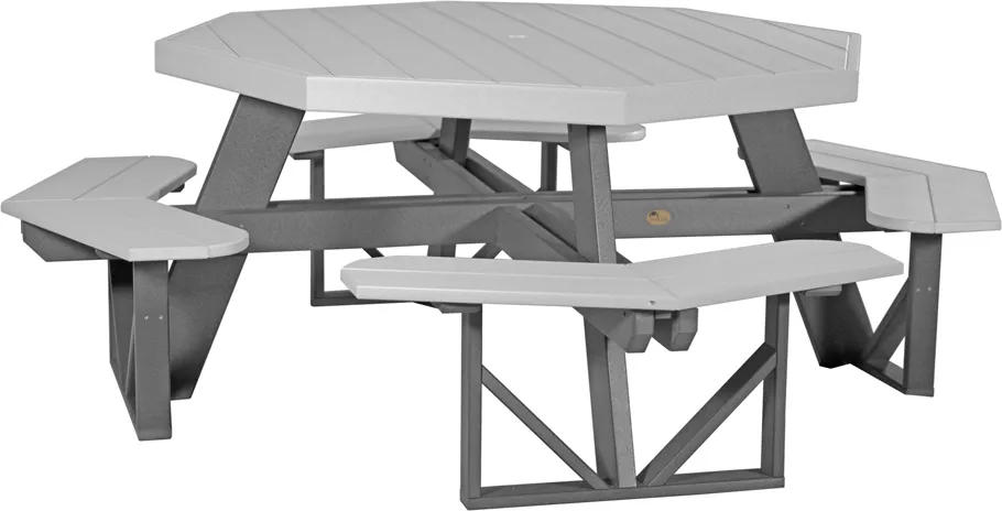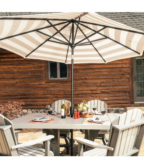 This octagonal table is both stylish and practical. The table comes with an umbrella hole (plugged) and stabilizer block to prevent your umbrella from twisting and turning, umbrella sold separately. This table is maintenance free and will seat 8 people.