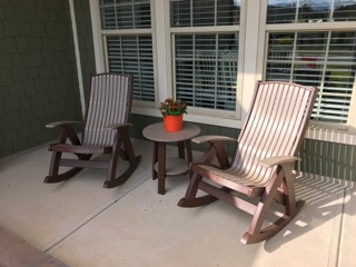 Sometimes you have a nook outside that best fits one person. Many lawn chairs are smaller versions of benches that can keep one person, plus a small pet or your crafting, cosy. Some chairs have optional footrests. - Rocking Chair A rocking chair is a staple for relaxing indoors or out. As long as you know your chair, your rocker lets you lean back when you want to or sit up when you want to. Sometimes the constant movement is what makes people happy to sit in rocking chairs.