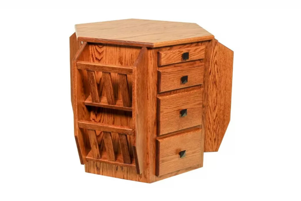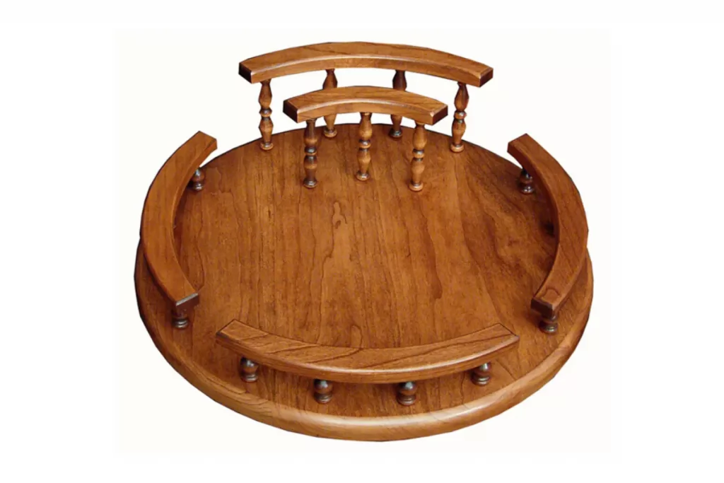 The Lazy Susan offers a blend of practicality and style, featuring the high-quality wood and craftsmanship of the Amish. Its simple design is enhanced by the geometric lines reminiscent of the 1920s.