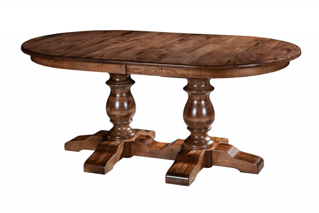 This dining table combines the simplicity and strength of Amish furniture with the sleek, geometric lines of Art Deco design. The double pedestal base adds a touch of elegance, making it a focal point in any dining room.