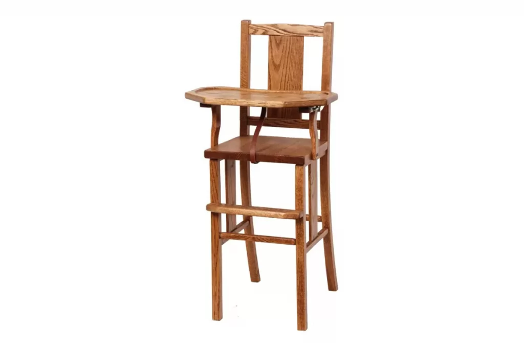The Baywood High Chair is a perfect example of Amish craftsmanship tailored for children, featuring sturdy construction and timeless design. Its simple elegance makes it a fitting addition to a household that values 1920s aesthetics.