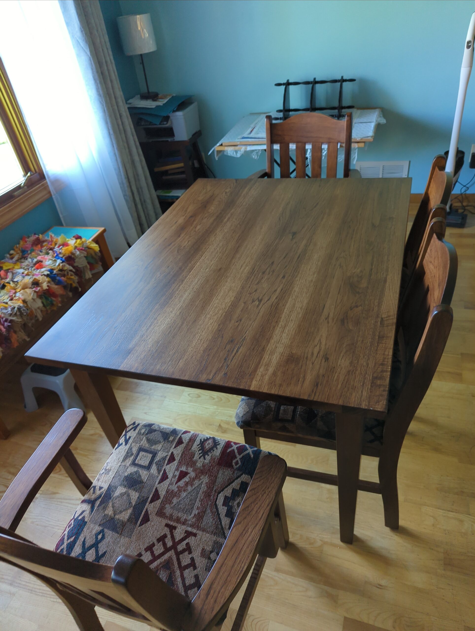 Sharon was able to make her purchase from us without any hassles during the online process. Her Adams dining room set is made in hickory wood with Chestnut stain and has fabric-upholstered chairs. We take delight in fulfilling our customers’ wishes. Thank you for sharing your shopping experience.