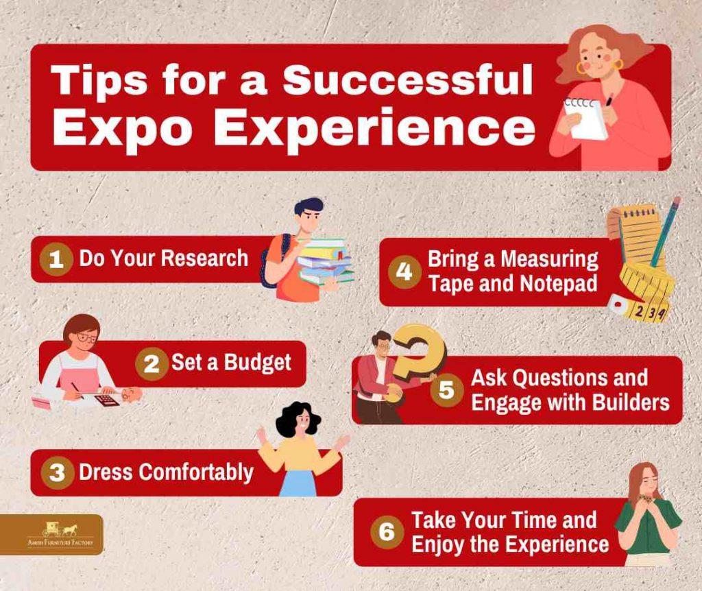 - Remember to do your research, set a budget, and dress comfortably for a successful expo experience.