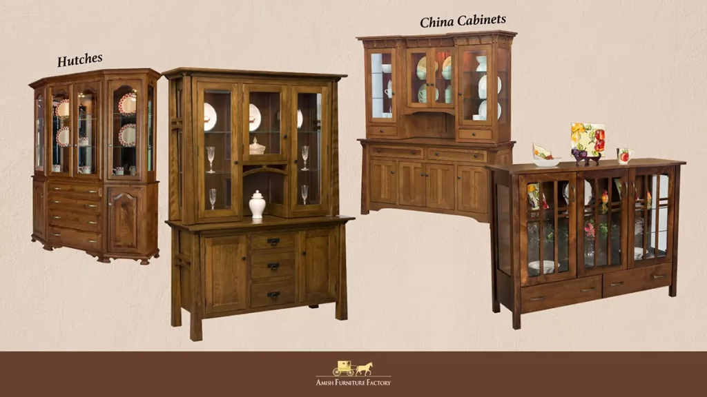 Amish hutches and china cabinets are designed for storage and display and often become focal points in a dining room.