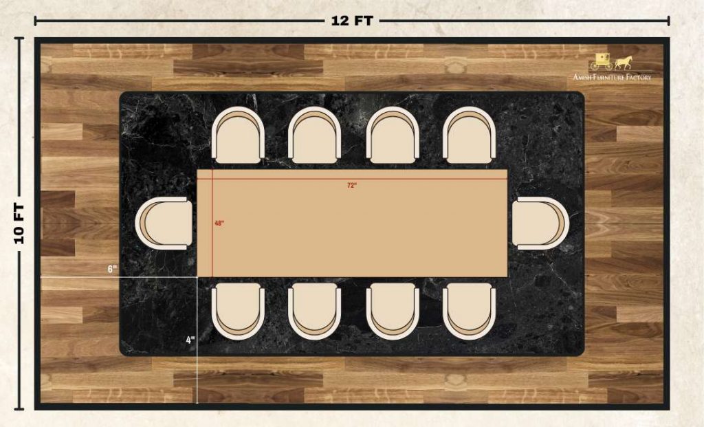 For example, if your dining room measures 12 feet by 10 feet: