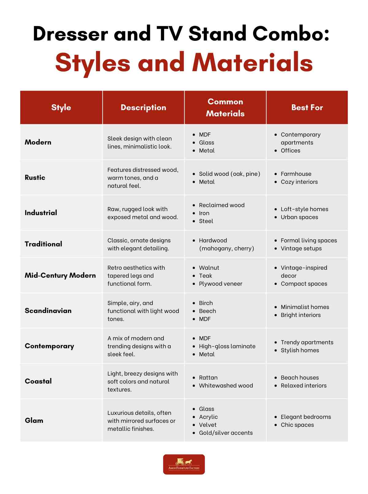 To create a cohesive look, match the style, finish, and materials of your dresser and TV stand with your existing furniture. Neutral colors and classic designs work well in most spaces, while careful attention to scale and proportion ensures balance.