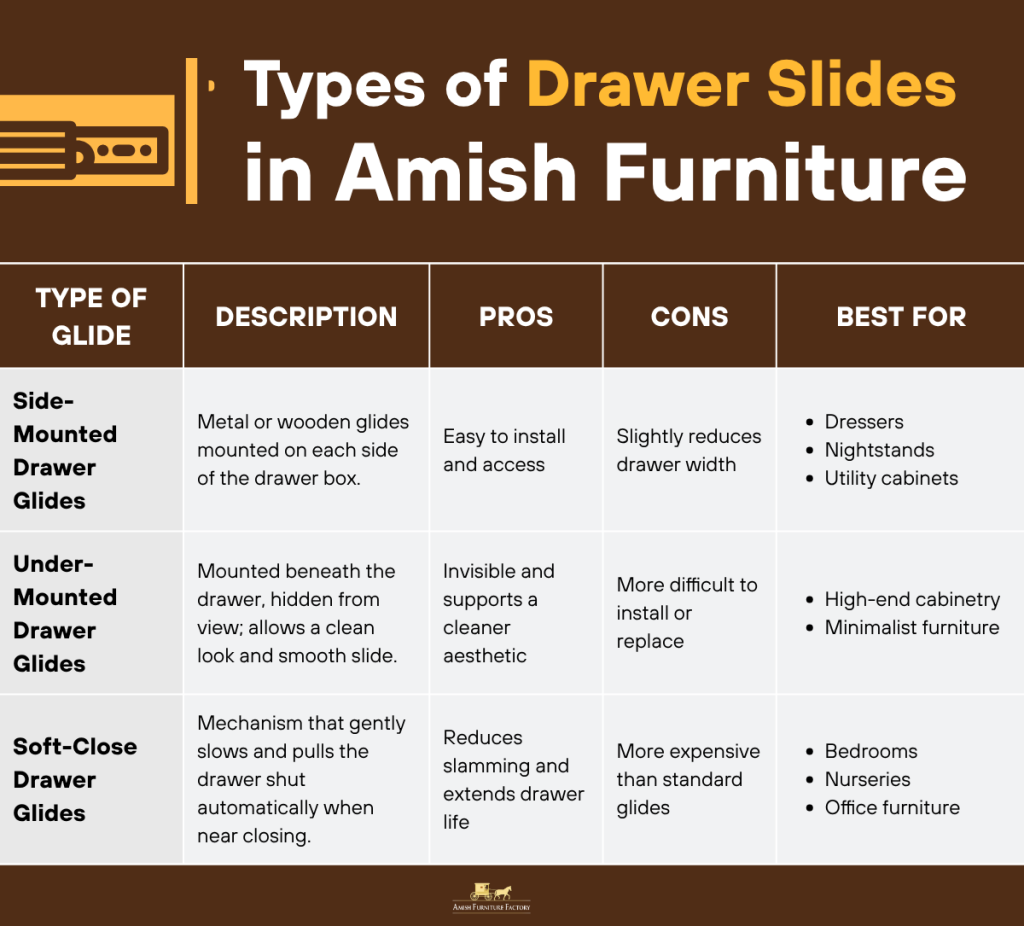 Types of Drawer Slides in Amish Furniture