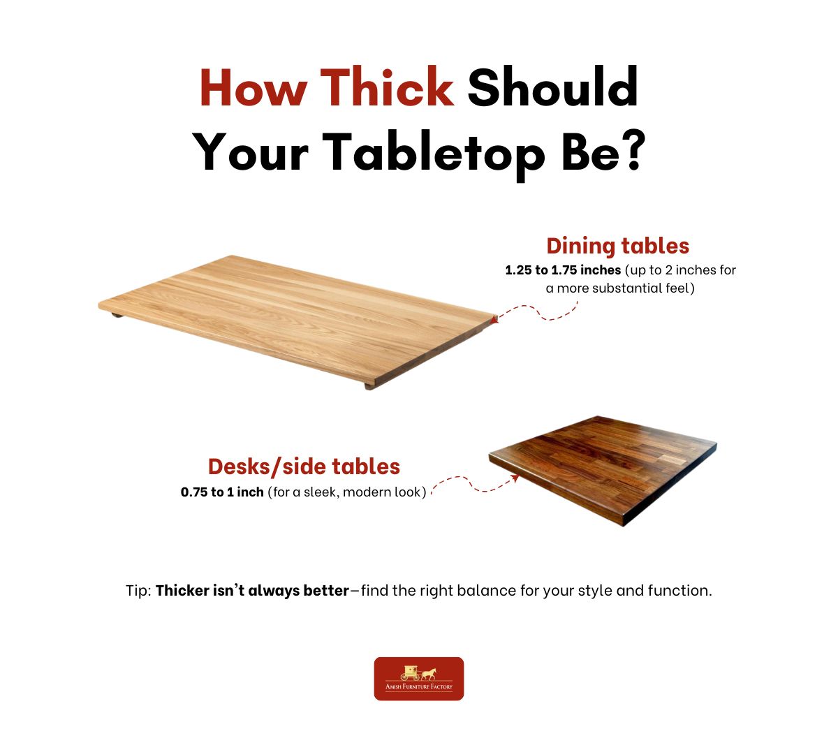- The thickness of the tabletop affects its strength and style, while the right finish protects the wood and makes it look its best.