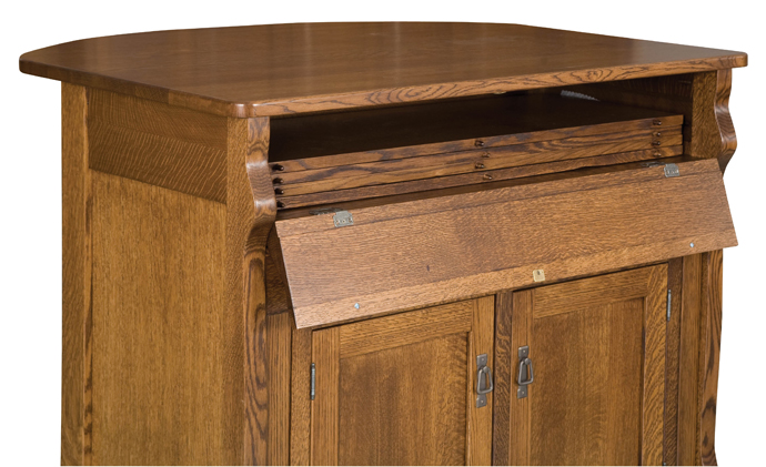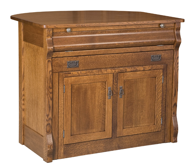 To begin with, like all of our furniture pieces, it is hand-crafted here in the U.S.A. of the solid wood of your choice. Options include brown maple or oak. For an additional charge you can select Maple, Hickory, Cherry or Quartersawn White Oak or Rustic Hickory or Cherry. When this versatile piece is delivered to your home it will come out of the box looking like this: