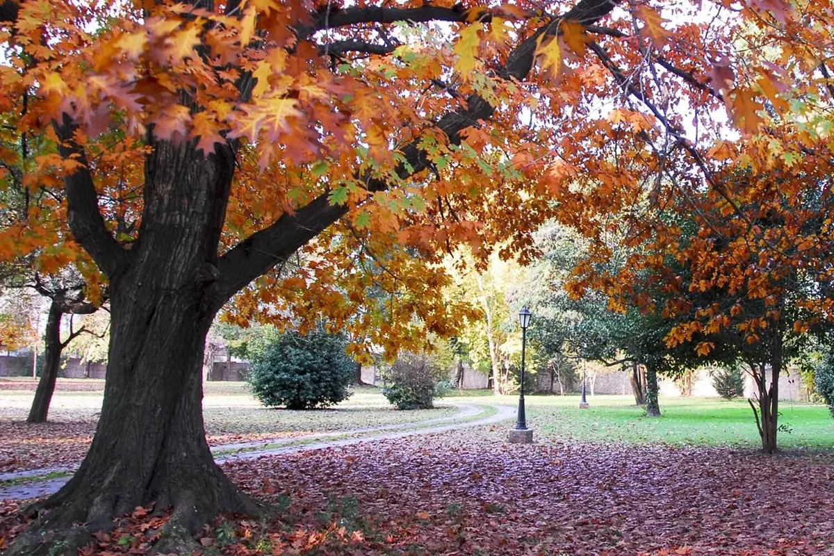 Red oak trees are native to North America. They are frequently seen in parks and gardens as ornamental trees.