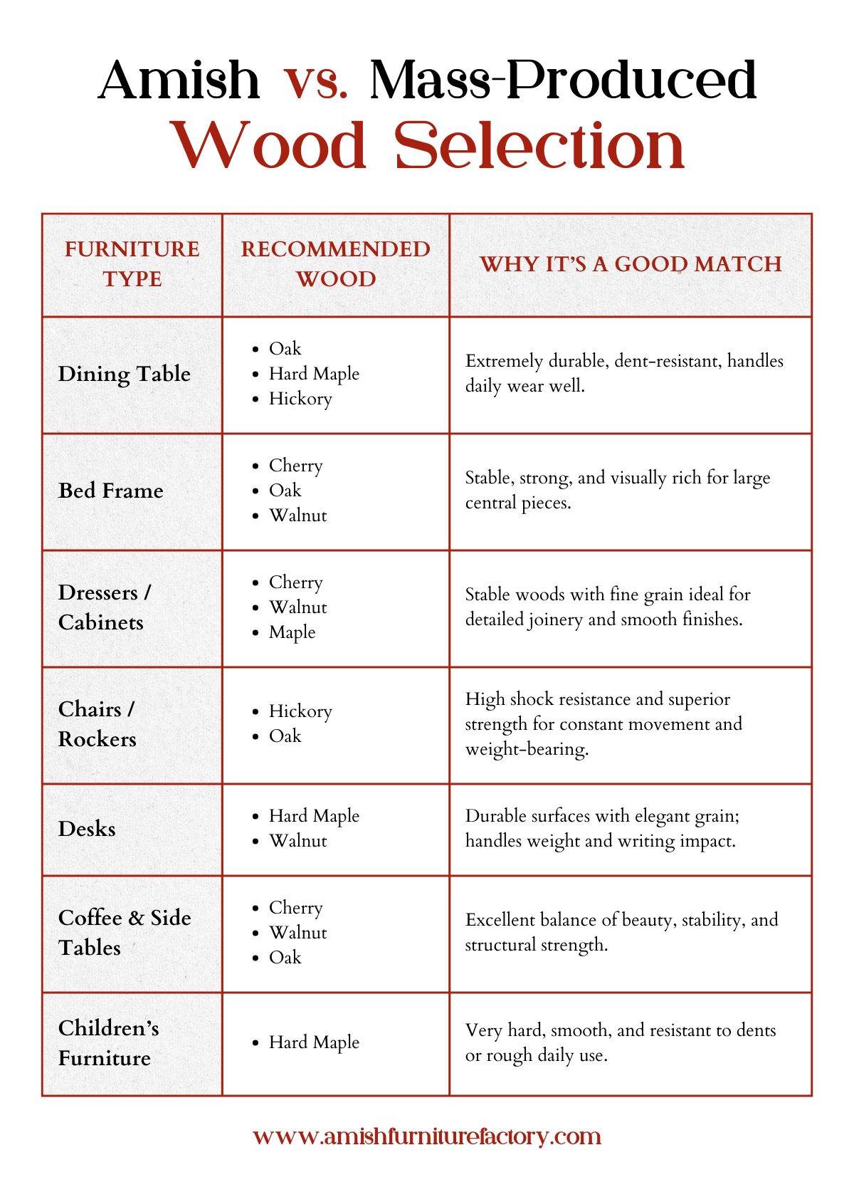 - Choosing the right wood based on function, style, and daily use ensures your Amish furniture investment lasts for generations.