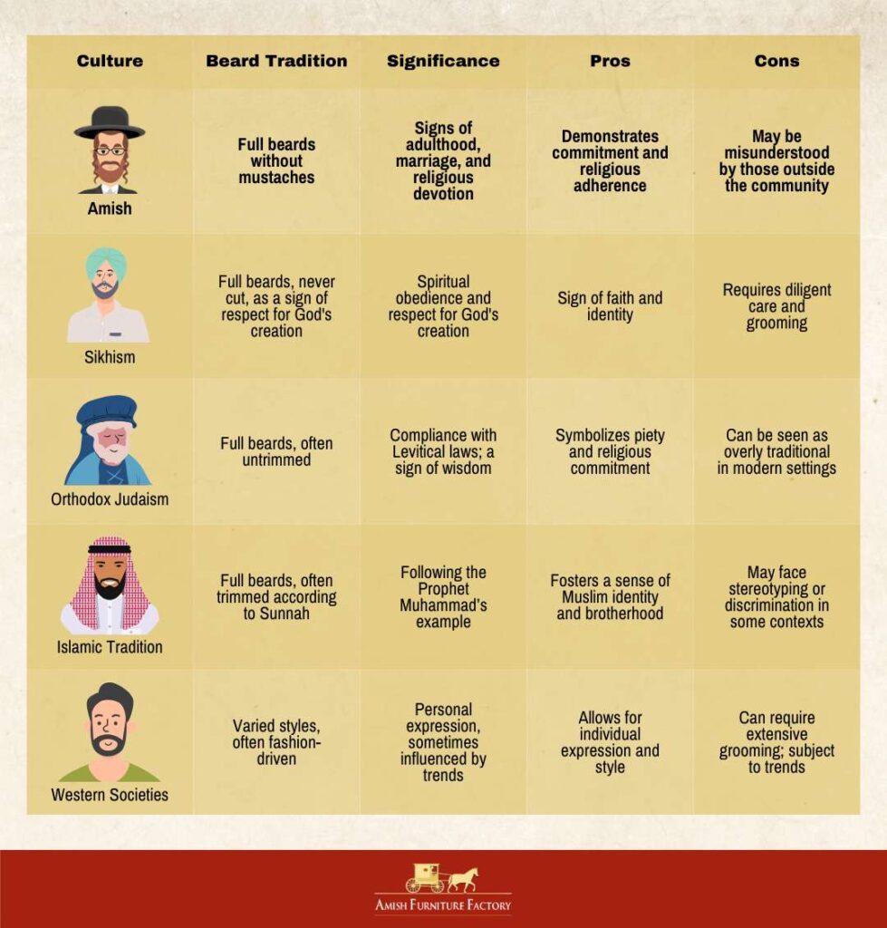 The following table offers an overview of beard traditions across different cultures, highlighting how each reflects its values, challenges, and benefits.