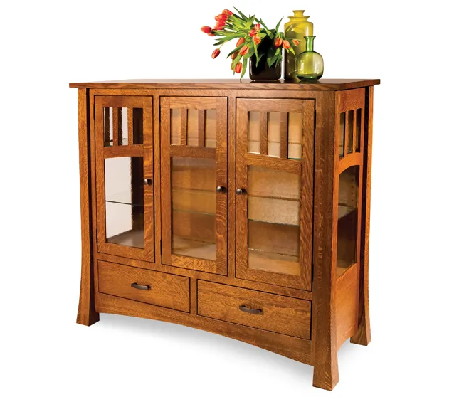 With its alluring tall glass doors and impeccable entirety, this Mission-style buffet serves as a beautiful addition to a dining or kitchen setting. The 50-inch high solid hardwood constructed piece promises great durability that your family will enjoy for life. The benefits of the Amish Arlington High Buffet will even extend to the next generations. Display your delectable dishes at the top of this buffet. Showcase your precious valuable items behind the artique glass to let them shine even more to gain your guests' admiration.