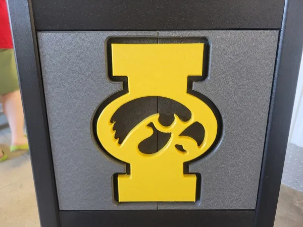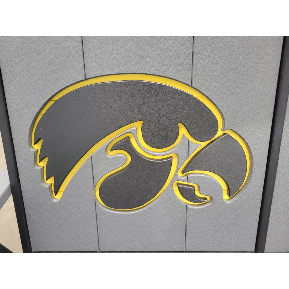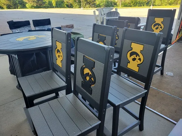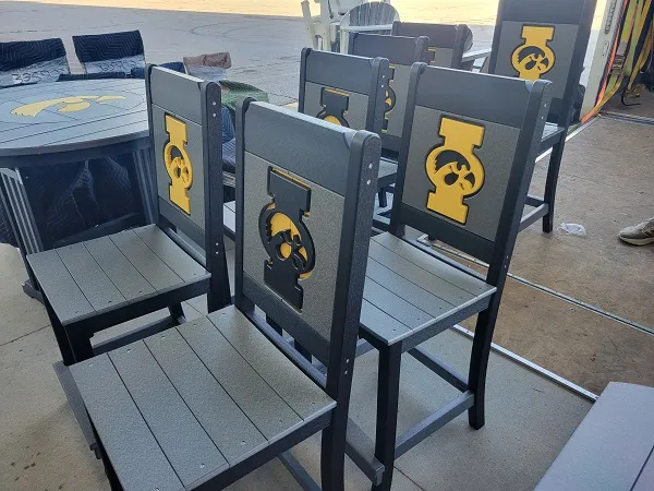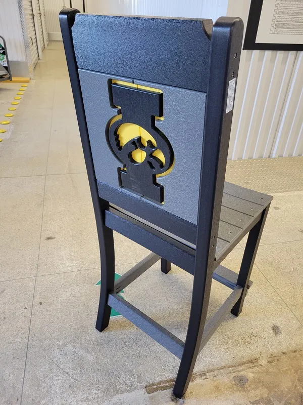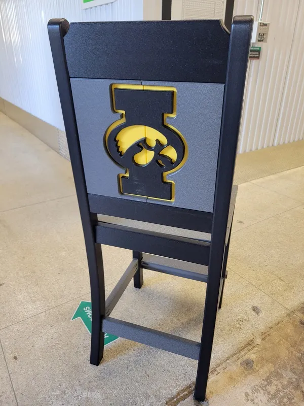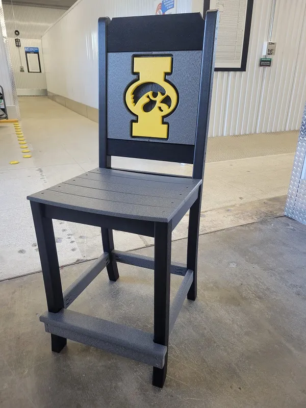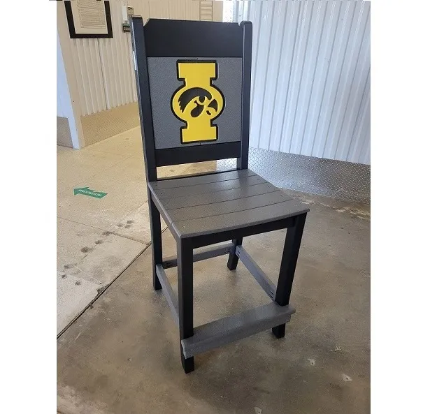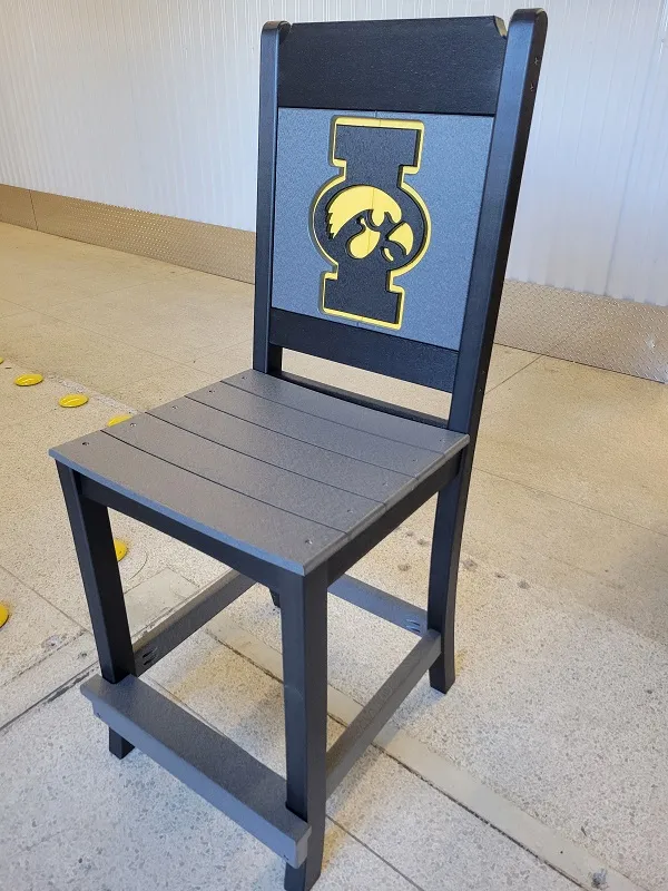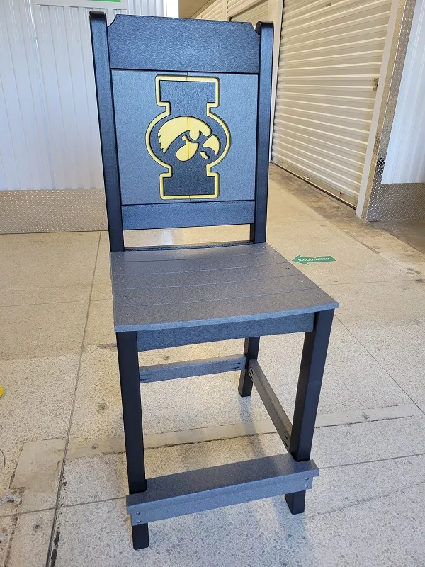 New Poly Vinyl outdoor bar chair with Iowa Hawkeye team logos (officially licensed).